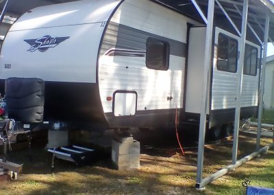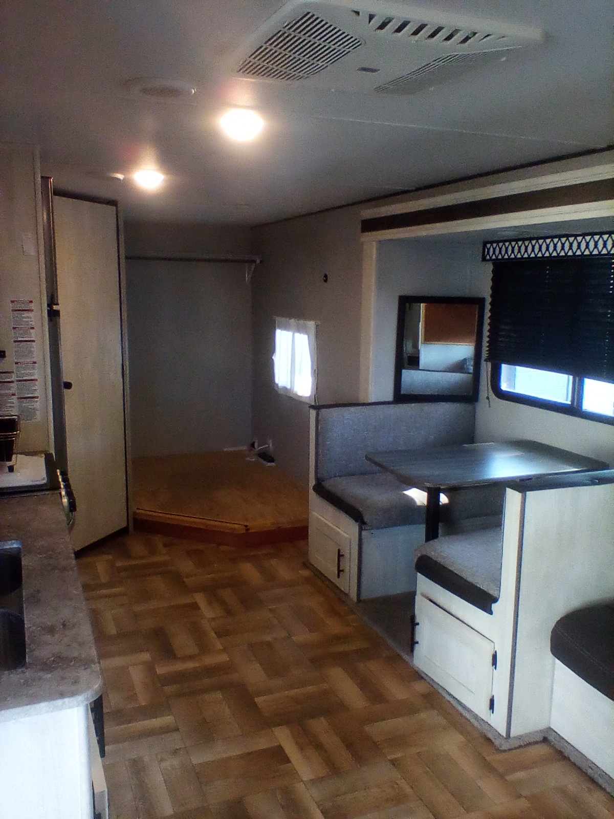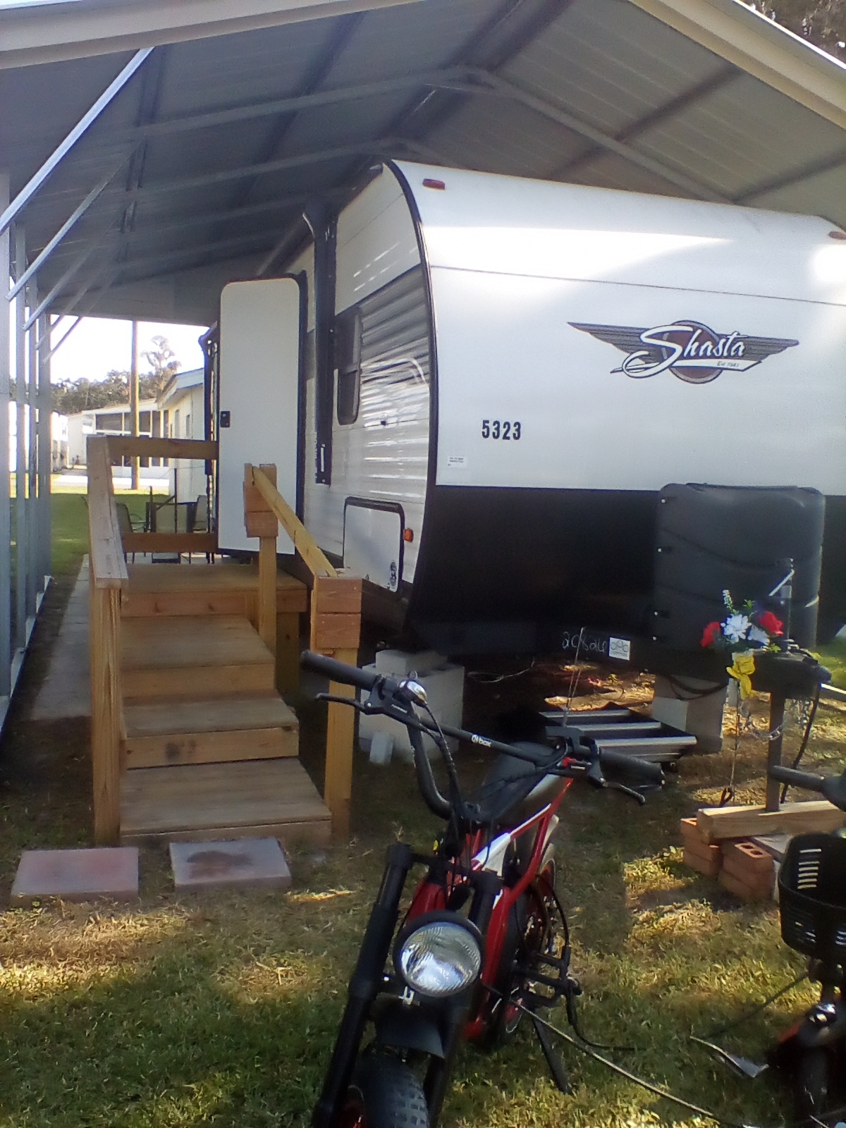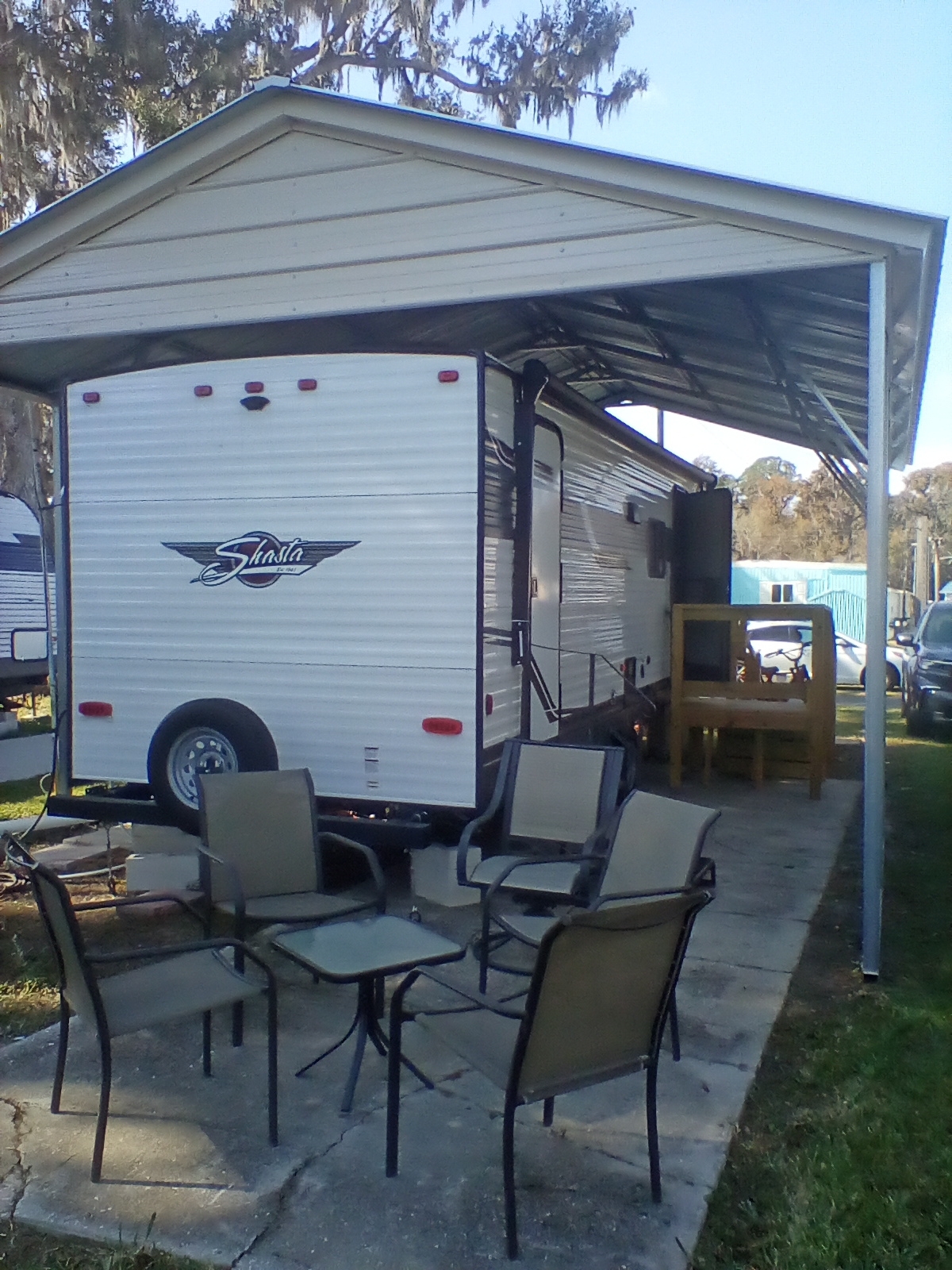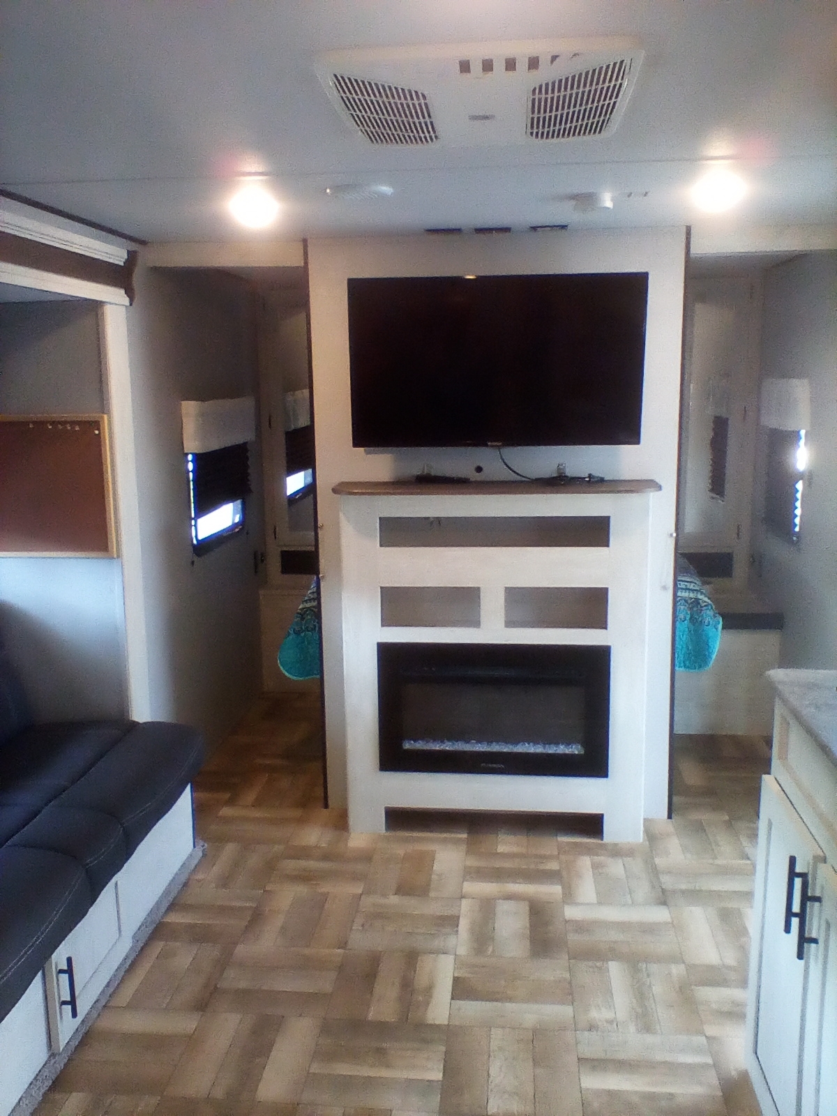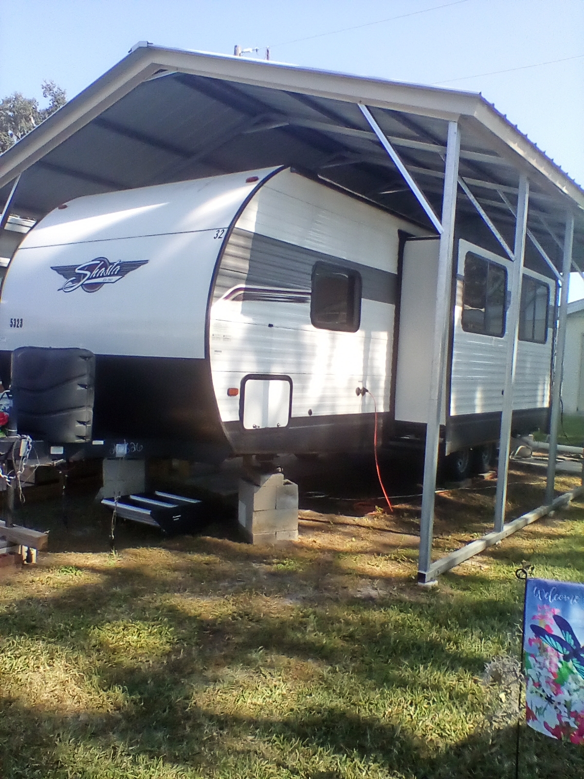 2023 Shasta camper. Excellent condition-modified to add an office/indoor storage space. Sturdy tie-downs added. 28 feet long, booth dining table in slide out. Couch, bedroom, office have USB charging outlets. Shower and oven never used. Microwave, electronic fireplace, larger tv, two 30 gallon full propane tanks included. Queen width bed and 2 custom sheet sets. Double bowl stainless steel sink, wide, sturdy staircase. Great roofover helps prevent heat build up. Available immediately. Bonus: December 25 lot rent paid!