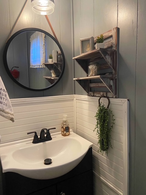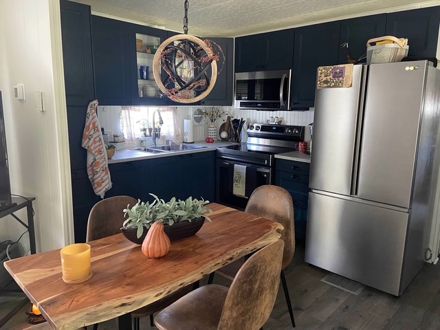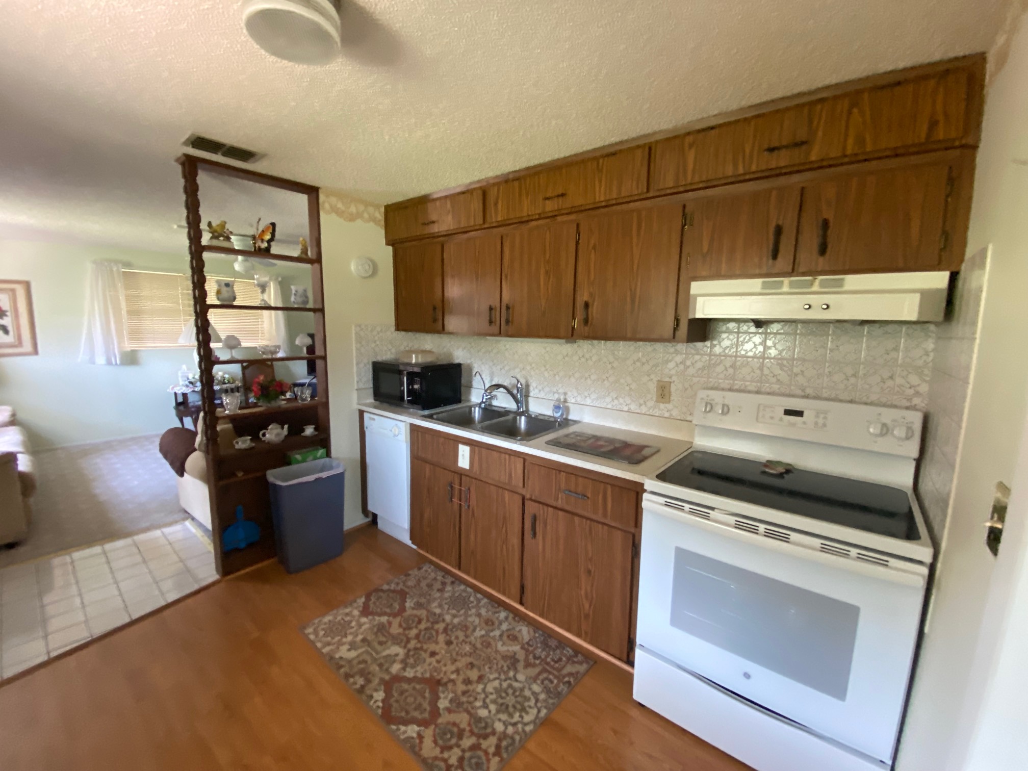 Remodeled in 2023 including: new vinyl and tile floors, baseboards, paint, bathroom countertops, kitchen cupboards and countertops, light fixtures, and all new appliances: glass cooktop electric range, refrigerator, dishwasher, washer, dryer, water heater, HVAC.